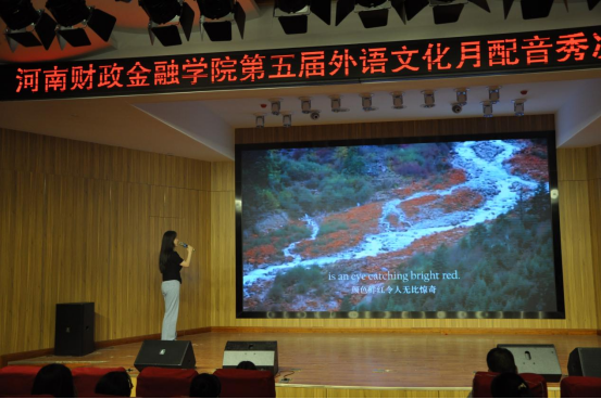 决赛现场,参赛选手发音标准,情感饱满,将自己完全融入到配音情节当中,声音时而低沉,时而高昂,把所配主题展现得淋漓尽致,以一口流利的英语口语赢得台下评委老师与观众的阵阵掌声。