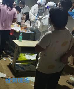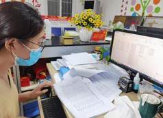 2019级英语教育一班郭钊艳同学8月3日在郑州市管城回族区中原金融产业园内参加志愿活动,帮忙录入核酸检测结果。