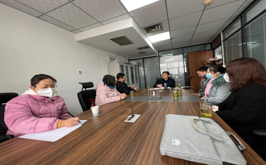 王黎明书记介绍了此行目的,了解企业人才需求情况,总结经验、分析问题、改进提高,全面深化校企合作,供需对接;坚持共赢原则,进一步探讨合作方式、方法,根据社会与市场需求,优化人才培养方案、教学计划、教学大纲等;为解决我院2023届商务英语本科毕业生实习就业提供更多岗位和机会,全力促进我院毕业生更加充分、更高质量实习就业。
